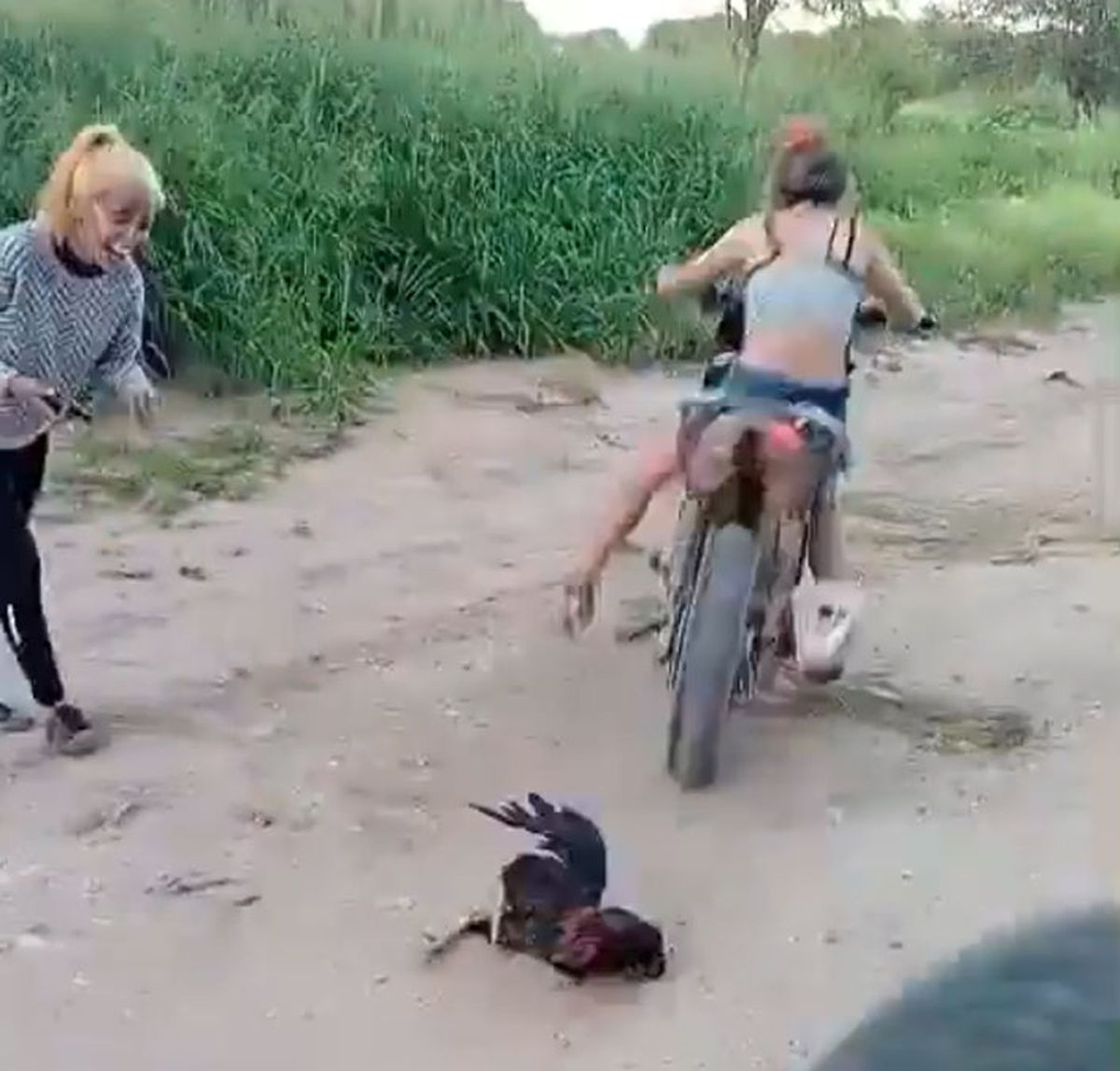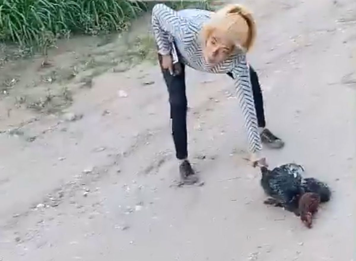 En las sensibles imágenes de maltrato animal, se puede ver de qué manera hacen sufrir a un gallo, pasándolo por arriba con una moto.