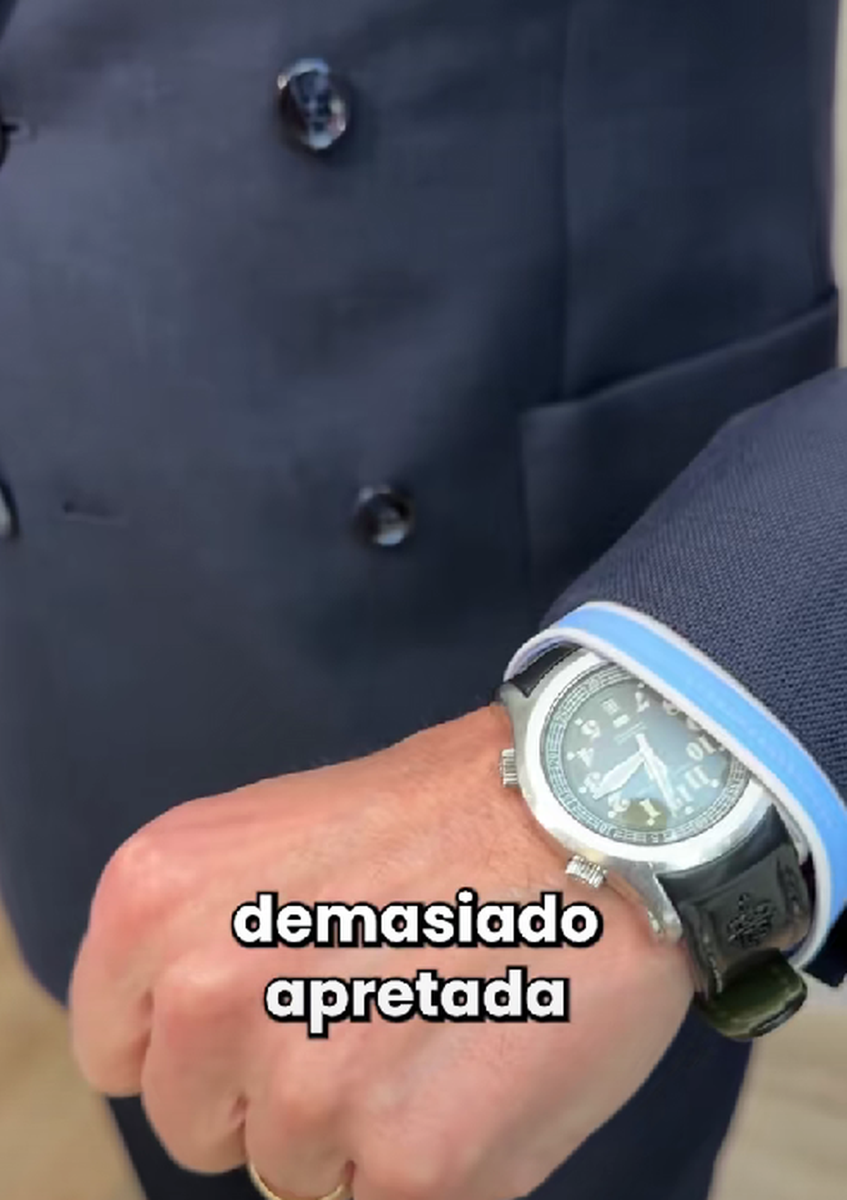 Es decir que, en la muñeca que lleves el reloj, deberás utilizar el segundo botón de la camisa, para que la manga pueda sobreponerse por encima del reloj sin ningún tipo de interferencia.