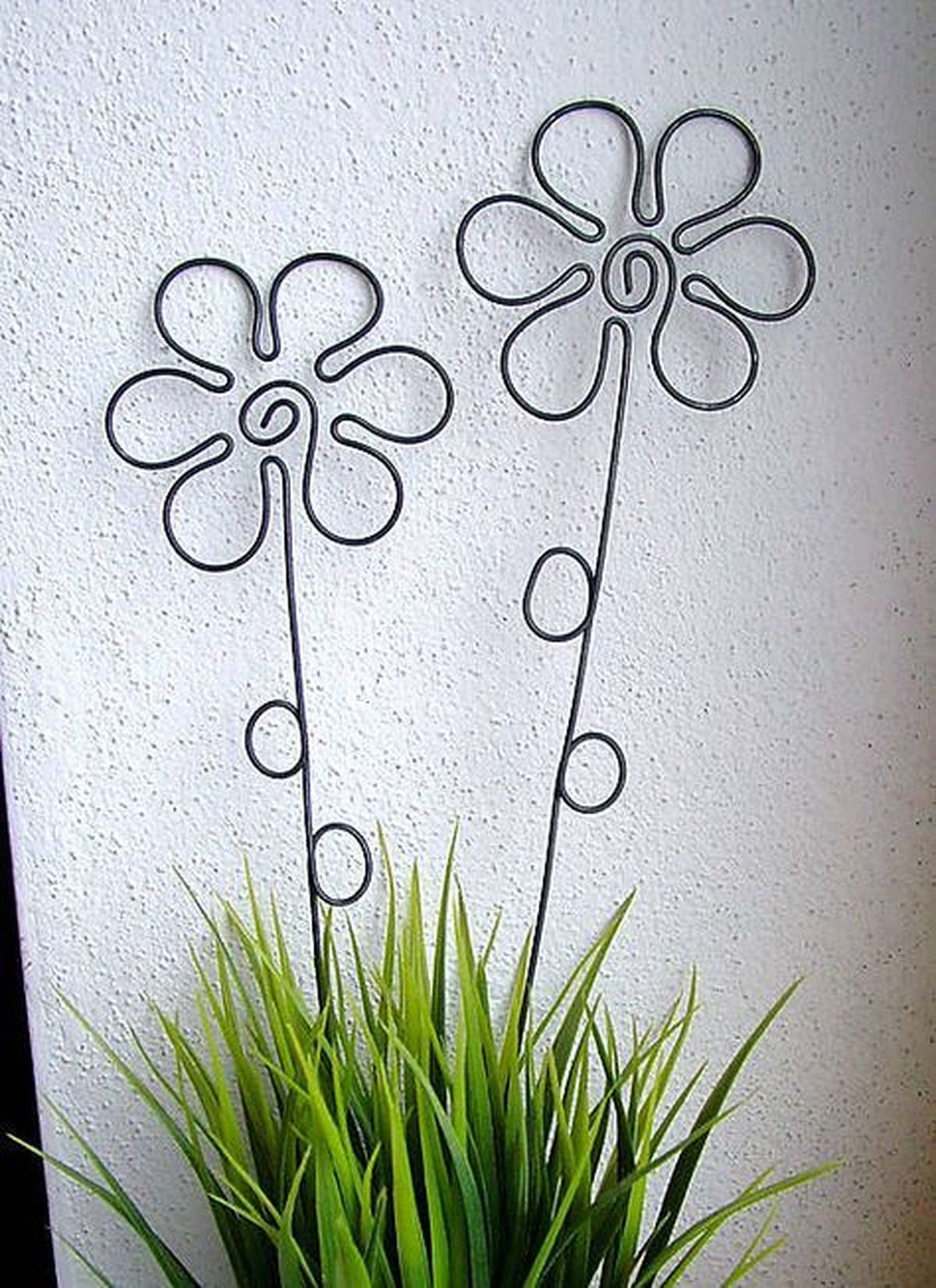 Es muy simple decorar las macetas y las plantas de tu casa. Para eso toma el alambre que tengas en casa y con la ayuda de una pinza comienza a darle la forma que más te guste, pueden ser flores, corazones, círculos o figuras abstractas. Incluso puedes moldear el elemento con tus propias manos si no tienes una pinza.