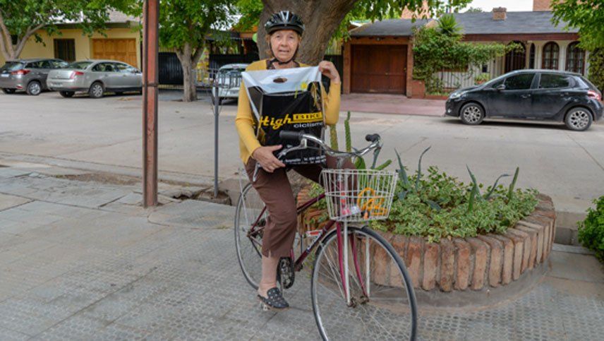 María Teresa Ambrosini es jubilada y vive en Rivadavia. Su caso se dio a conocer a nivel nacional luego de que la policía la multara con $14 mil por no usar casco cuando transitaba en bicicleta.