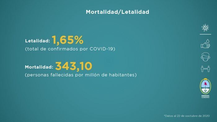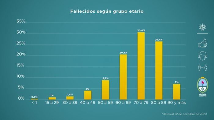 Al observar el porcentaje de fallecidos según el grupo etario, Mendoza cuenta con una mortalidad de 343,1 personas por millón de habitantes y de letalidad 1,65% por total de casos confirmados.