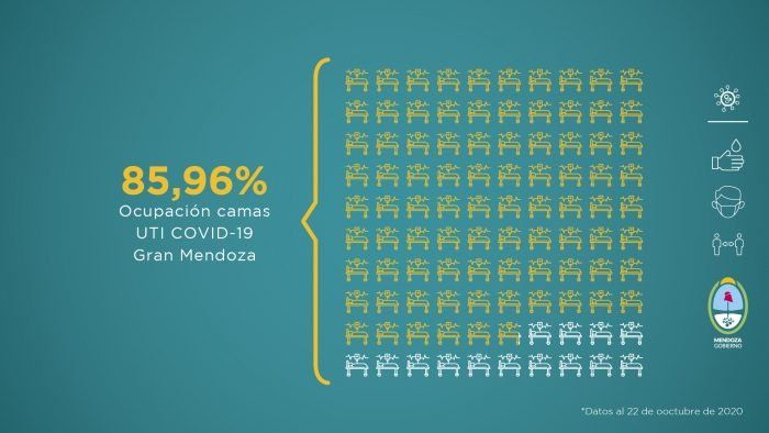 En cuanto al factor ocupacional de las camas de terapia intensiva, en el Gran Mendoza es del 85,96% y del 79,30% en todo el territorio mendocino. Esta cifra no condice que los datos que dio a conocer este viernes el presidente Alberto Fernández, que ubicó ese porcentaje en el 88% al explicar la situación epidemiológica de las provincias y su preocupación por el interior del país, ya que ocho provincias concentran el 55% de los casos actuales de la Argentina.