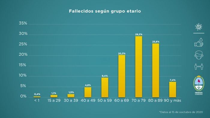 Asimismo, el grupo etario más vulnerable frente a la enfermedad sigue siendo el de los adultos mayores. El 75,4% de los fallecidos tiene entre 60 años a los 89 años y las personas de más de 90 años representa el 7,4%.