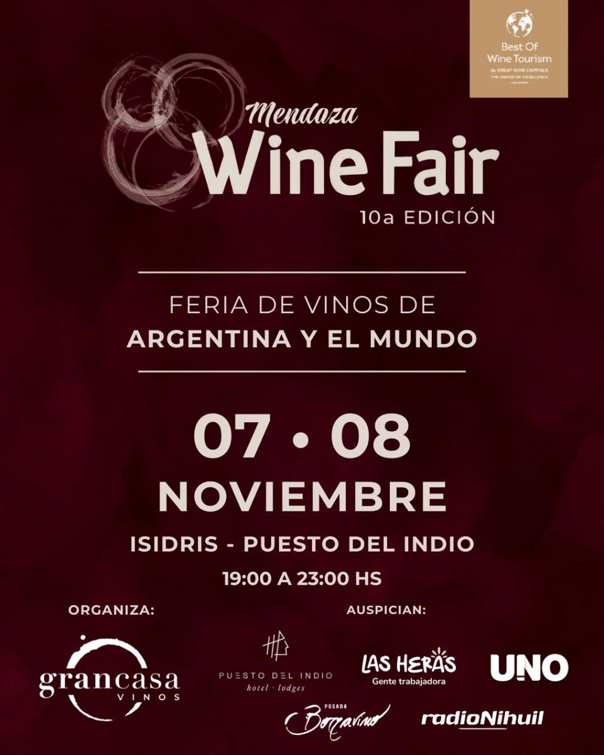 La Mendoza Wine Fair 2025 es organizada por Gran Casa Vinos y cuenta con el apoyo de la Municipalidad de Las Heras, Posada Borravino, Puesto del Indio, UNO y Radio Nihuil.