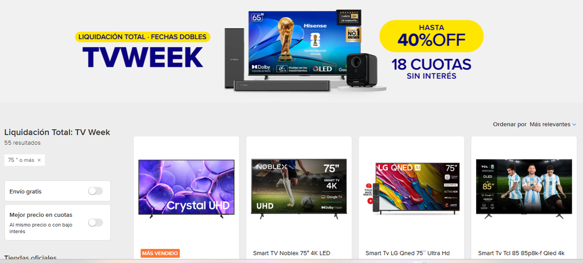 En caso de que una persona quiera gastar menos cantidad de dinero, Mercado Libre y las empresas asociadas a la promoción también ofrecen otras opciones a menores costos y que van desde televisores Smart Tv de 40 pulgadas para arriba.