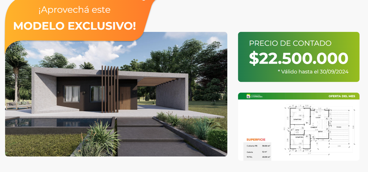 En los últimos años, son muchas las personas que optan por una casa prefabricada y así cumplir su sueño de tener una vivienda propia. Sin dudas, uno de los grandes atractivos que tiene este tipo de inmuebles es el precio, que es mucho más bajo que el de una vivienda tradicional. Un ejemplo de esto, es este modelo exclusivo de Viviendas La Esperanza que cuesta $ 22.500.000, cifra que en dólar blue equivale a 18.000 dólares.