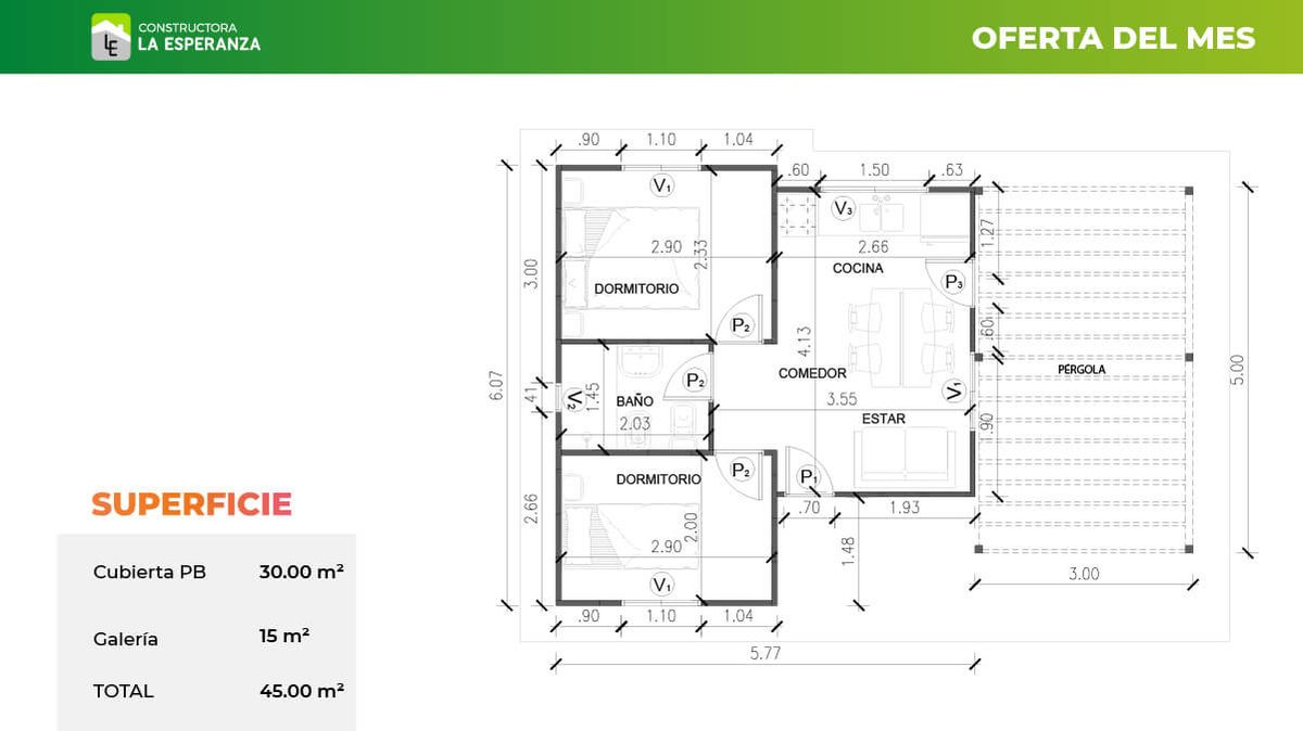 - Superficie total de 45 metros cuadrados, de los cuales 30 son cubiertos