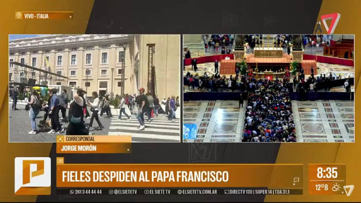 La despedida abierta al público, que se ofrece de recogimiento y oración, se extenderá hasta la medianoche. En tanto, el jueves los católicos podrán ver el féretro del papa Francisco desde las 7 de la mañana hasta última hora del día, y el viernes el horario de visita será de 7 a 19.