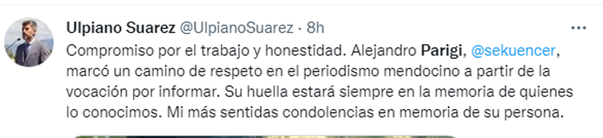 También en el arco político, producto de tantas entrevistas en sus coberturas diarias, lamentaron su fallecimiento. Obviamente la noticia caló hondo en el mundo artístico porque siempre tuvo vínculos con ese sector. Y otro tanto ocurrió con hinchas de Godoy Cruz, club de sus amores, aunque tuvo otra pasión futbolera: Estudiantes de La Plata.