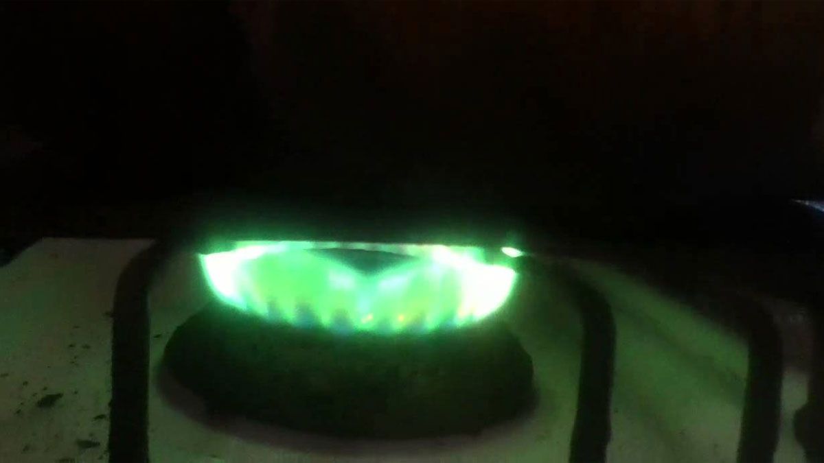 La llama verde es poco poco frecuente y puede verse en cualquier artefacto que funciona a gas.