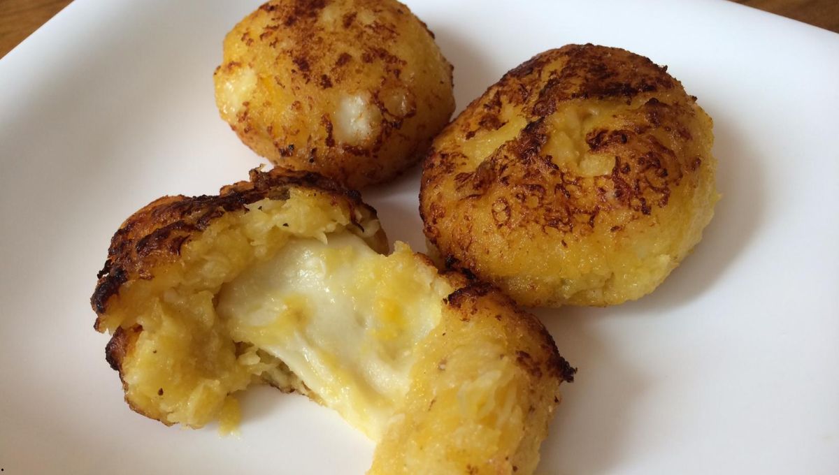 - Armar bolas pequeñas y sumarle 1/2 cucharada de queso en el medio, cerrar la torta y colocar en un sartén con aceite.