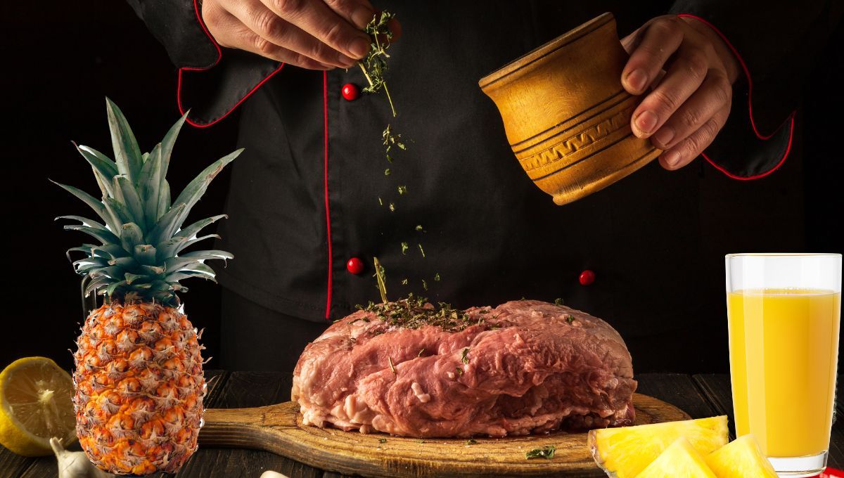 Esta acción ayuda a romper las fibras del tejido conectivo, lo que hace que la carne se vuelva más tierna en menos tiempo. Además, el jugo de piña aporta un toque de dulzura y acidez que, bien balanceado, puede darle un perfil de sabor único y agradable a la carne.
