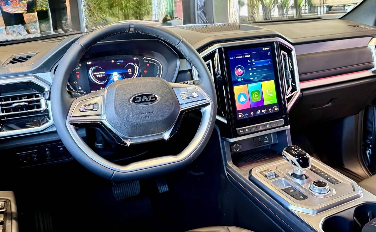 El interior de este vehículo está compuesto por un volante forrado en cuero de dos rayos, tablero digital y una consola central que tiene un estilo que recuerda al de la Ford Ranger, sobre todo por la pantalla multimedia en disposición vertical.