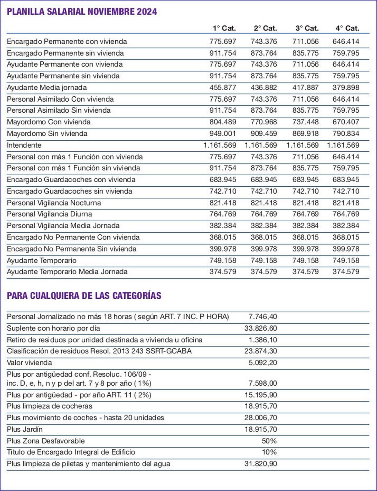 Los trabajadores afiliados a la Federación Argentina de Trabajadores de Edificios de Renta y Horizontal (FATERYH) alcanzó un nuevo acuerdo de aumento salarial del 3,5% para el mes de noviembre