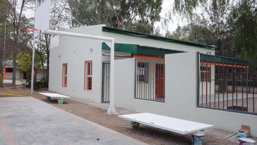 Las obras en el establecimiento ubicado en el kilómetro 45 de la ruta 40, de Ugarteche, contemplaron la construcción de 830 metros cuadrados cubiertos nuevos y la refuncionalización de otros 740 metros cuadrados en el edificio de la Escuela 1-486 José Lorenzo Guiraldes, que comparte predio con la escuela secundaria.