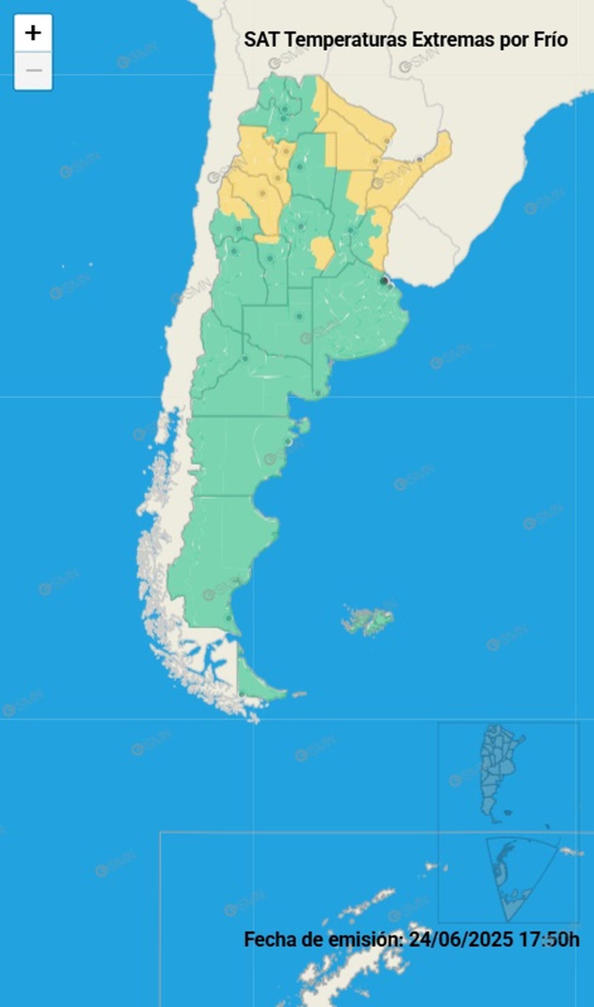 Una gran ola polar ha llegado al país y ha afectado a varias provincias con su paso. El Servicio Meteorológico Nacional emitió un alerta por la llegada de temperaturas extremadamente frías a una gran cantidad de provincias este miércoles 25 de junio.