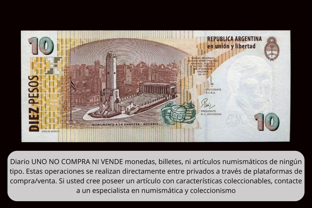 En el mundo del coleccionismo de monedas y billetes existe un billete de 10 pesos muy especial que se diferencia de otros ejemplares por un rasgo especial