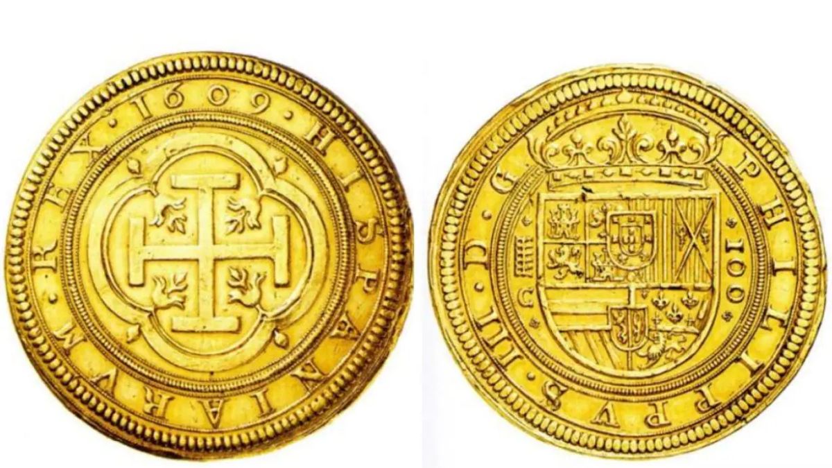 Entre estos tesoros, destacando en el sexto lugar, se encuentra una peseta. Es una moneda acuñada en 1870, cuyo valor original era de 100 pesetas. Solo se conocen doce de estas monedas: seis en manos privadas y seis en la colección de la Fábrica de Moneda y Timbre de España.