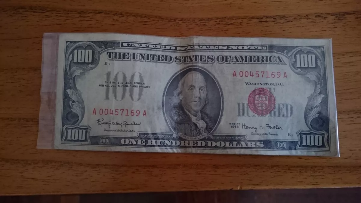Según los expertos, entre 1966 y 1969 la Reserva Federal de Estados Unidos imprimió varios billetes de 100 dólares con sellos azules y rojos. La razón es que esos billetes eran respaldados con certificados de plata y de oro, por lo que cada color de sello distinguía el tipo de certificado.