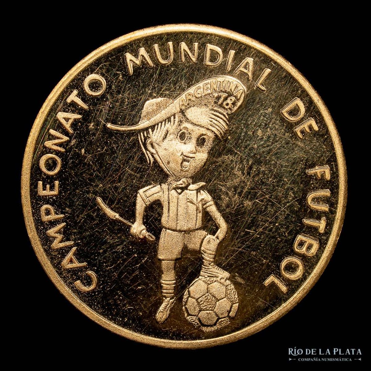 Esta moneda argentina no estuvo en circulación, sino que fue conmemorativa. Existieron dos tipos de ejemplares, una de oro y otra de plata y se hicieron especialmente para el mundial 1978. Actualmente, el valor del ejemplar dorado es de 700 dólares y es muy anhelada por muchos coleccionistas de monedas y billetes.