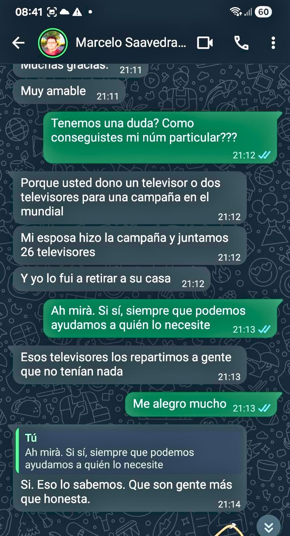 “En ese momento ella trabajaba en Radio 1 e hizo campaña para juntar televisores. Nosotros donamos dos”, cuenta.