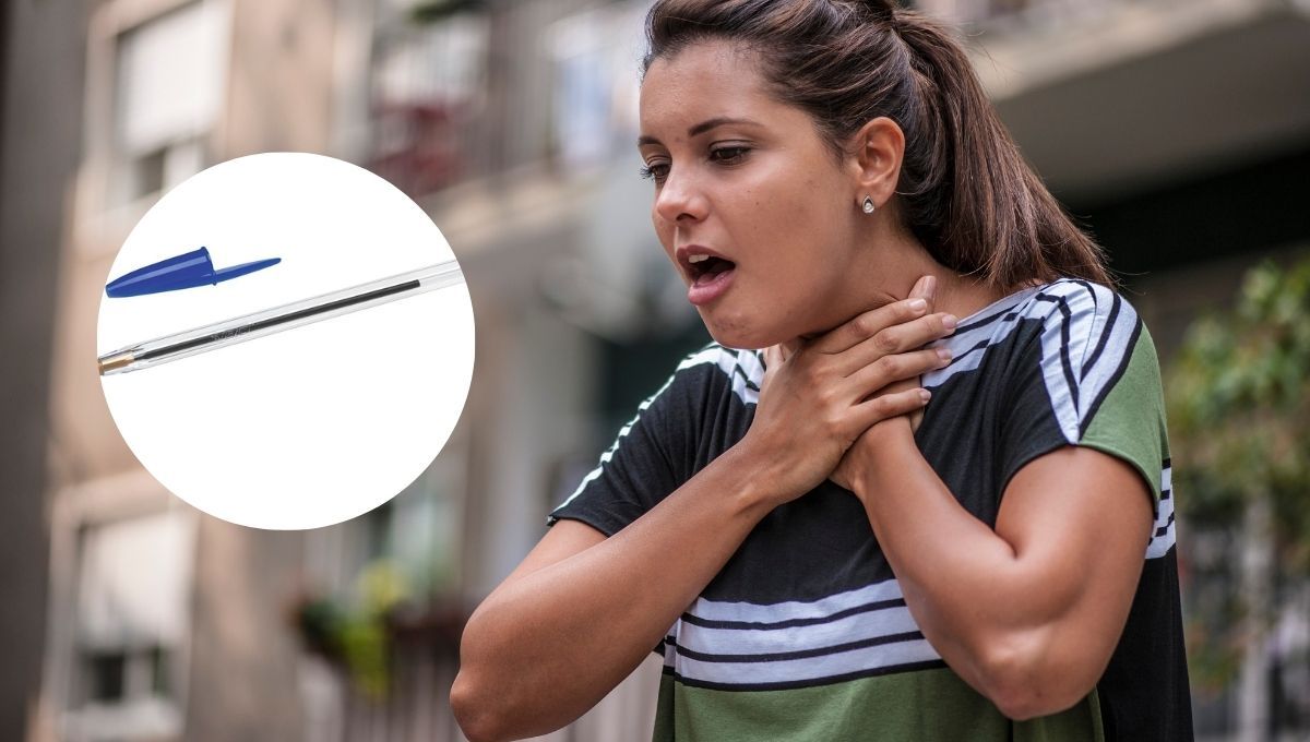 La tapa se ajusta perfectamente a la punta del bolígrafo, pero la perforación proporciona un canal para que el aire siga circulando, lo que podría marcar la diferencia en una situación de emergencia.