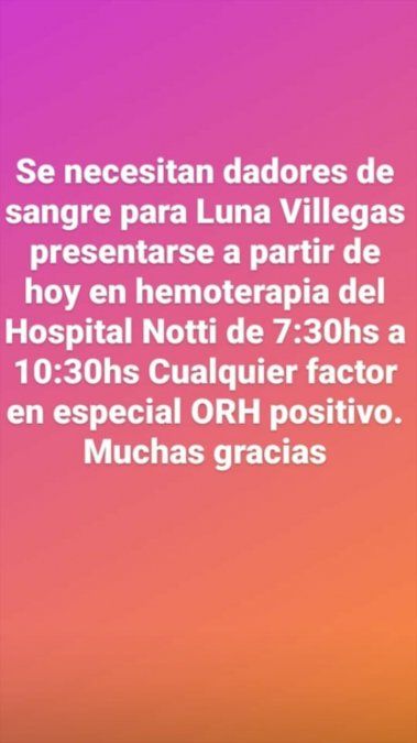 Hasta el momento reacciona bien al tratamiento pero para poder continuarlo, Luna Villegas necesita de la ayuda de los mendocinos para que donen sangre O RH positivo.