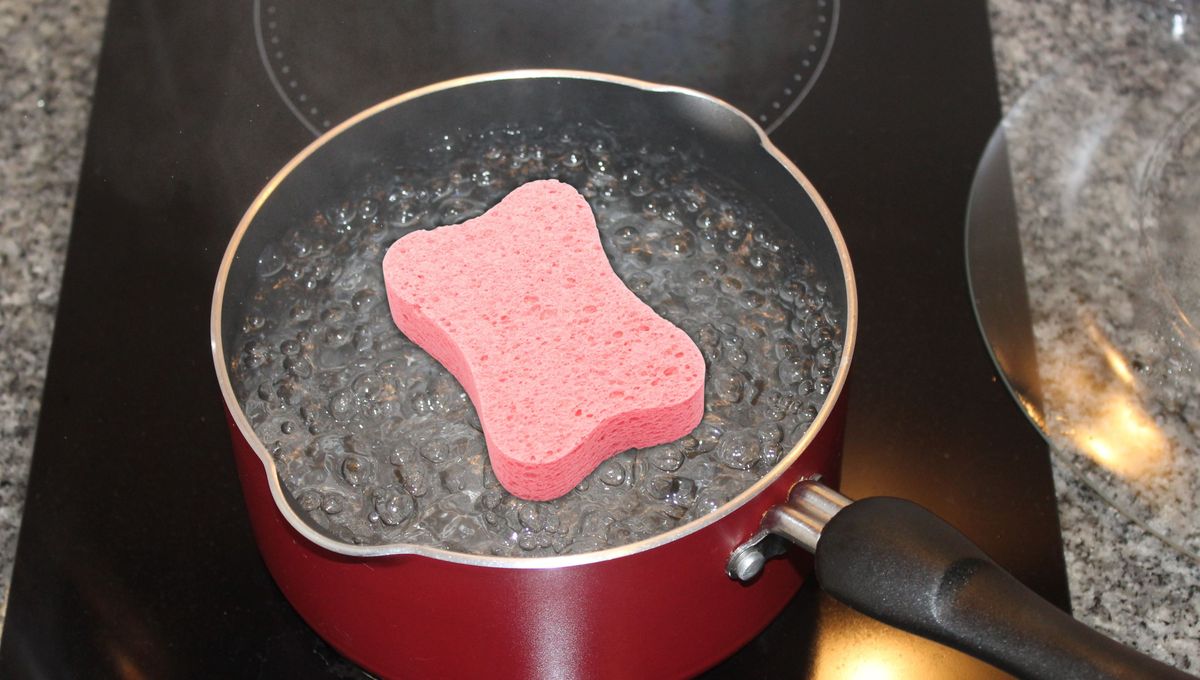 Simplemente debes colocar una olla con agua en la hornalla de la cocina, colocar las esponjas dentro y llevar a punto de ebullición.