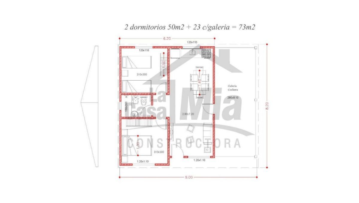 - Superficie total de 73 m²