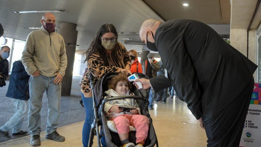 En Palmares y en Mendoza Plaza Shopping la postal fue más o menos parecida. En casa ingreso el personal de Seguridad le tomaba la temperatura a toda persona que quisiera ingresar.