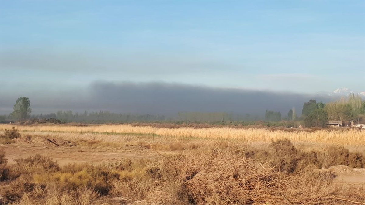 En zonas rurales productivas de Colonia Segovia, Guaymallén, también se registraron heladas, por lo que prendieron fuego neumáticos para evitar que el frío llegue y afecte a los cultivos. Es una vieja costumbre para proteger la producción.