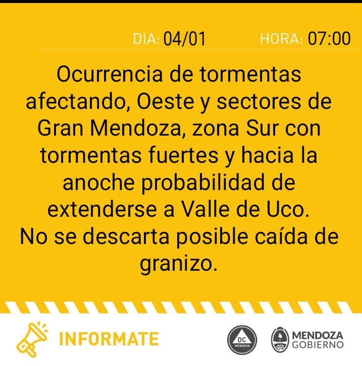 En cuanto a las tormentas, están pronosticadas para este sábado, sobre todo en el Sur provincial aunque con ocurrencia en el Gran Mendoza y en la noche en el Valle de Uco. No descartaron la posibilidad de caída de granizo.