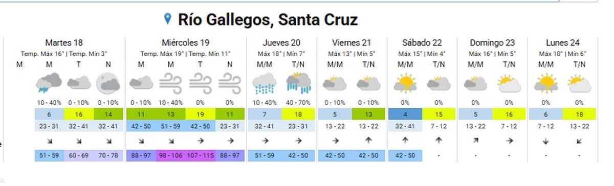 El Servicio Meteorológico Nacional ha emitido una alerta naranja por la llegada de ráfagas extremadamente fuertes en la provincia de Santa Cruz. El área será afectada por vientos del sector oeste y noroeste con velocidades entre 40 y 65 km/h, y ráfagas que pueden alcanzar los 100 km/h.