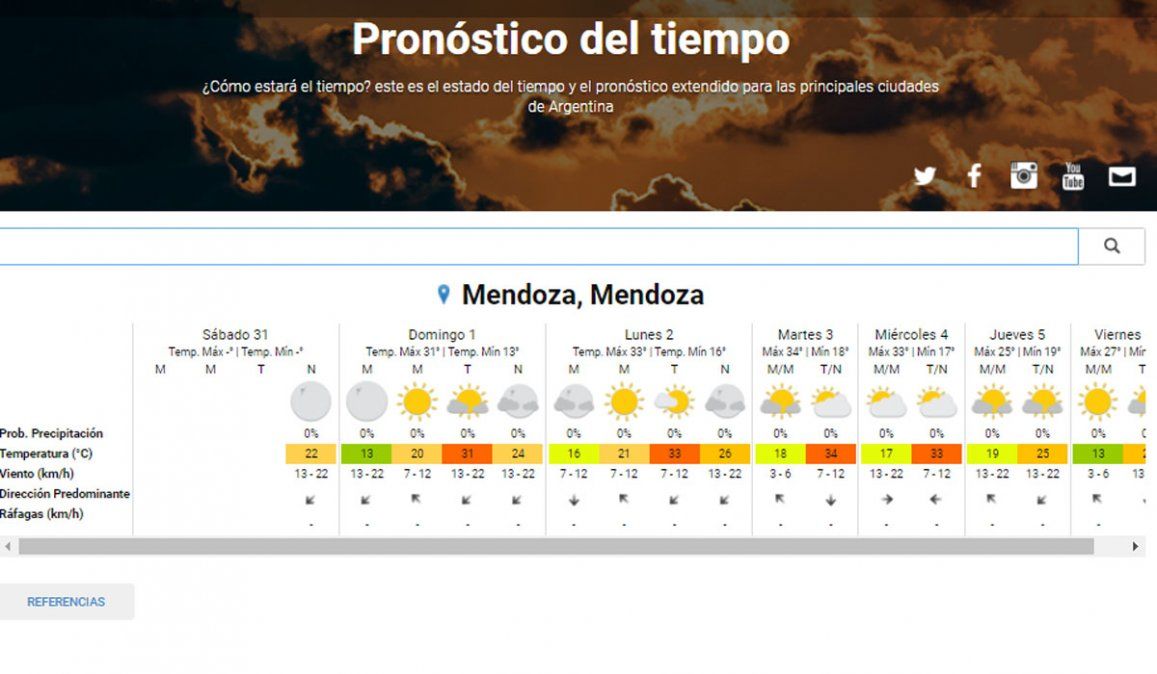El domingo se presentará caluroso, según indica el pronóstico del tiempo del Servicio Meteorológico Nacional (SMN) para Mendoza. La mínima estará en los 13 grados y la máxima ascenderá a 31.