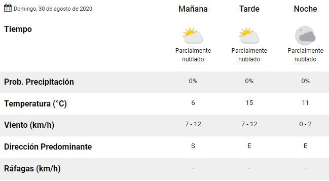 El pronóstico del tiempo prevé para Mendoza un domingo algo nublado, con poco cambio de temperatura, vientos leves del noreste y heladas parciales.