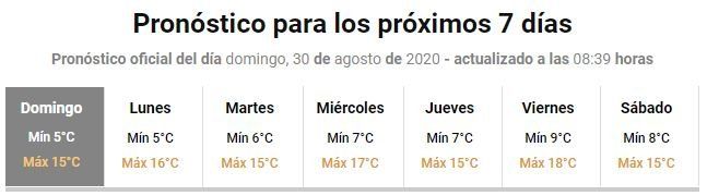 La temperatura máxima será de 16°C, mientras que la mínima descenderá hasta los 3°C. En tanto, la temperatura irá en descenso hasta que este martes ingrese un frente frío que llevará a la máxima a tan solo 8°C.