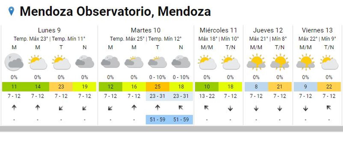 El pronóstico del tiempo para la semana en Mendoza: zonda para el martes