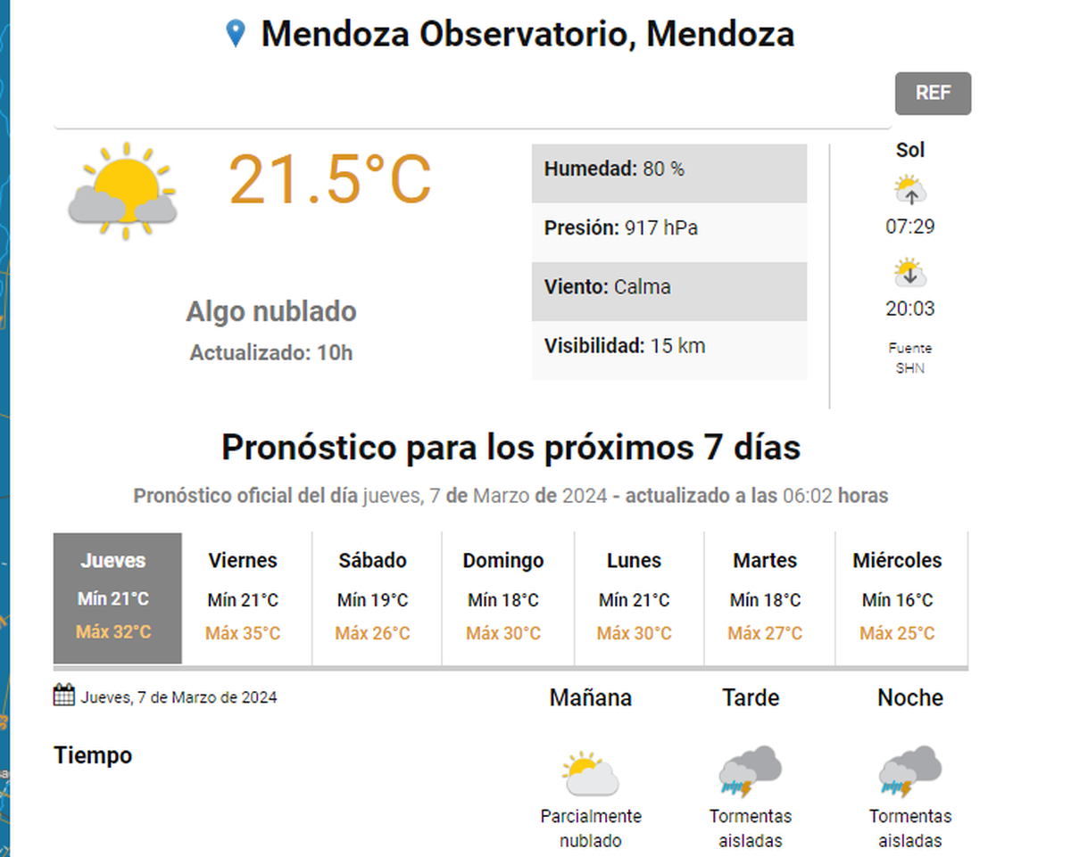 Para este jueves el SMN emitió un aviso "amarillo" por viento Zonda para el sur de la provincia, parte del valle de Uco, la zona cordillerana y Uspallata. También alertaron en código amarillo por fuertes tormentas para la tarde-noche en el este y norte provincial