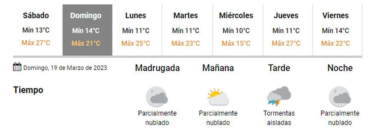 El pronóstico del tiempo en Cacheuta y Potrerillos anticipa un domingo con temperaturas apenas superiores a los 20ºC y algo nublado por la mañana. Además hay probabilidad de tormentas aisladas durante la tarde.