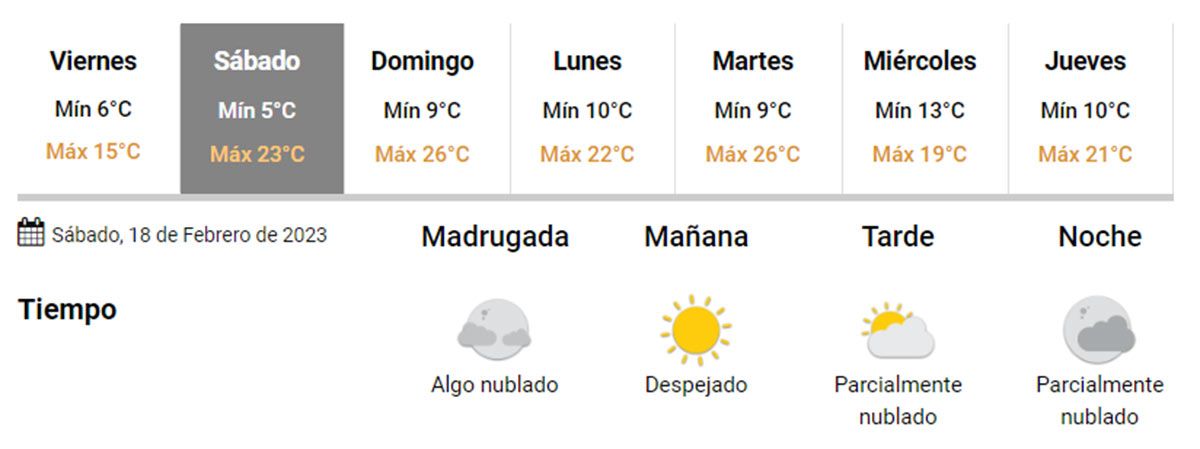 Este sábado el cielo estará despejado durante toda la jornada. La temperatura mínima será de 5ºC y la máxima de 23ºC en las localidades de la montaña mendocina.