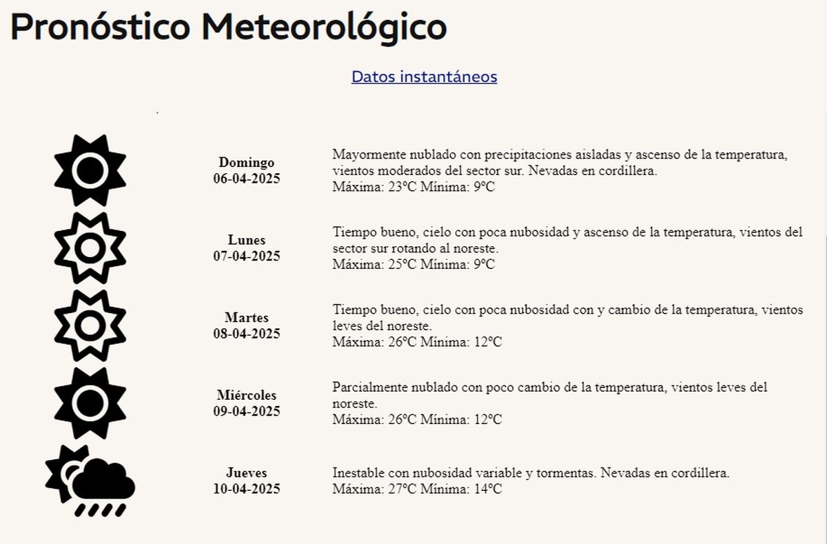 Pronóstico del tiempo en Mendoza para toda la semana: este domingo estará inestable con lluvias