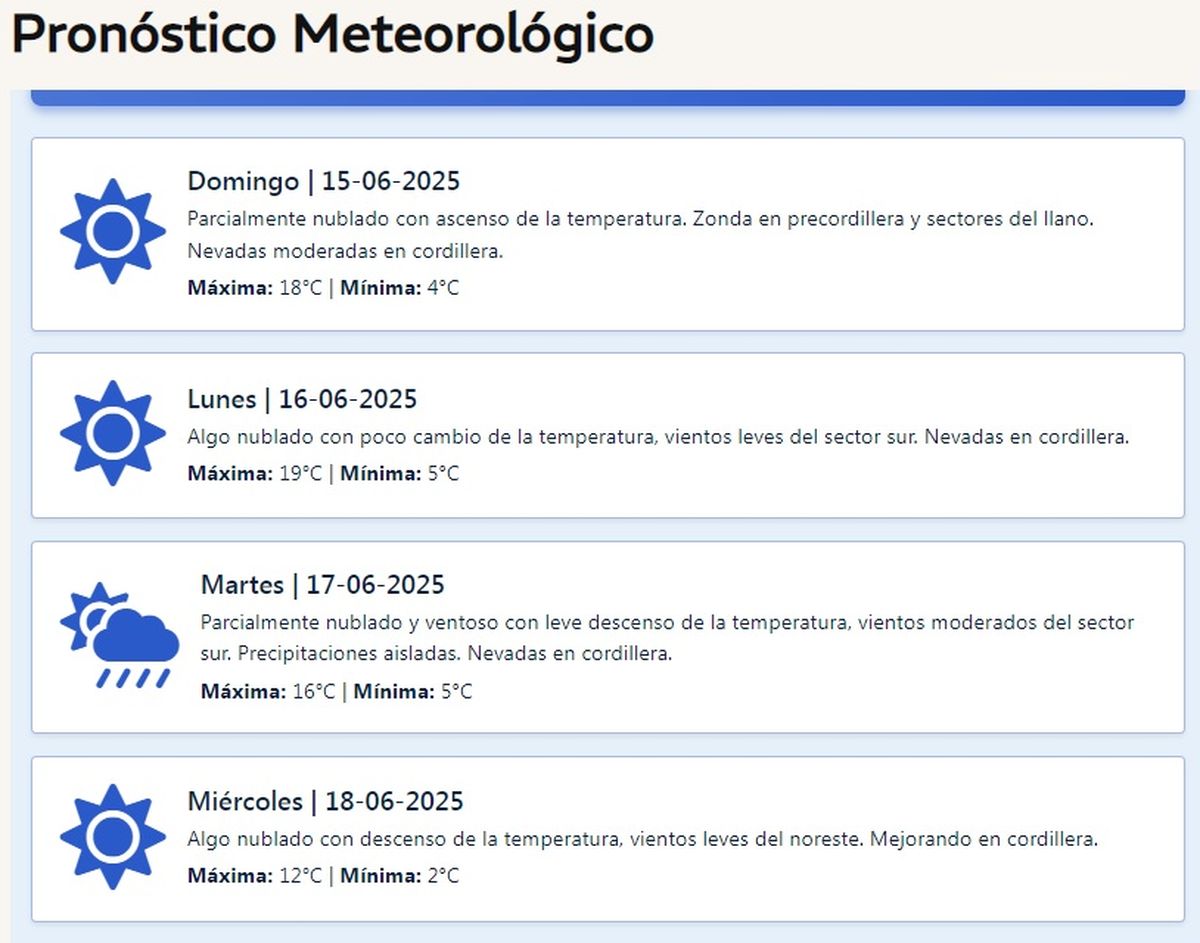Pronóstico del tiempo en Mendoza para toda la semana: este domingo estará nublado con viento Zonda