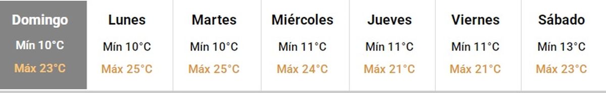 Mientras que para el sábado, en el inicio de un nuevo fin de semana, se anuncian condiciones de inestabilidad, el cielo estará mayormente nublado, con leve ascenso de la temperatura, vientos leves del sudoeste rotando al noreste, con una máxima probable de 23º y una mínima de 13º.