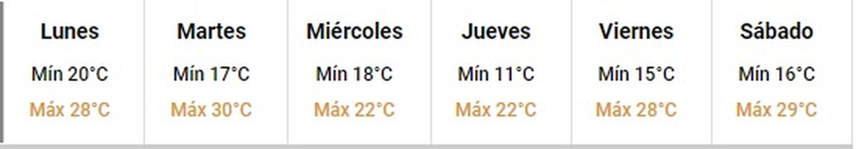 Tras un domingo en que la temperatura podría llegar a los 31º con nubosidad variable y vientos leves del noreste, el comienzo de semana viene con una marcada situación de inestabilidad ya que para este lunes se un cielo con nubosidad variable y probables tormentas aisladas, vientos moderados del sector sur que aportarán humedad ambiental y el ingreso de sistema frontal, con una máxima de 28º y una mínima de 20º.