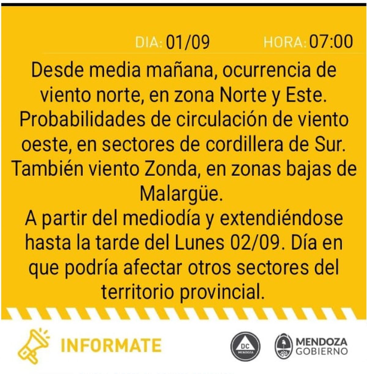 De acuerdo a los datos aportados por Contingencias Climáticas Mendoza, este domingo habrá tiempo bueno, con ascenso de la temperatura, vientos moderados del sector norte, con efecto Zonda. Buen tiempo en cordillera, con una máxima en el Gran Mendoza de 24º.