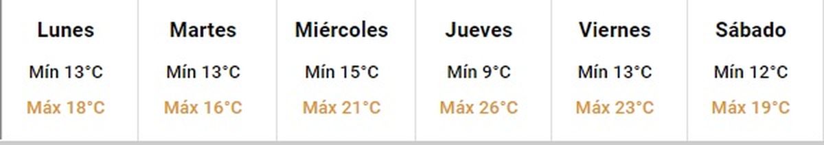 Para el viernes y sábado, se esperan jornadas con buen tiempo, con cielo algo nublado por momentos y con leve descenso de la temperatura aunque con tiempo agradable. Las máximas se ubicarían entre los 23 y los 19º, mientras que las mínimas serían de 12º a 13º.