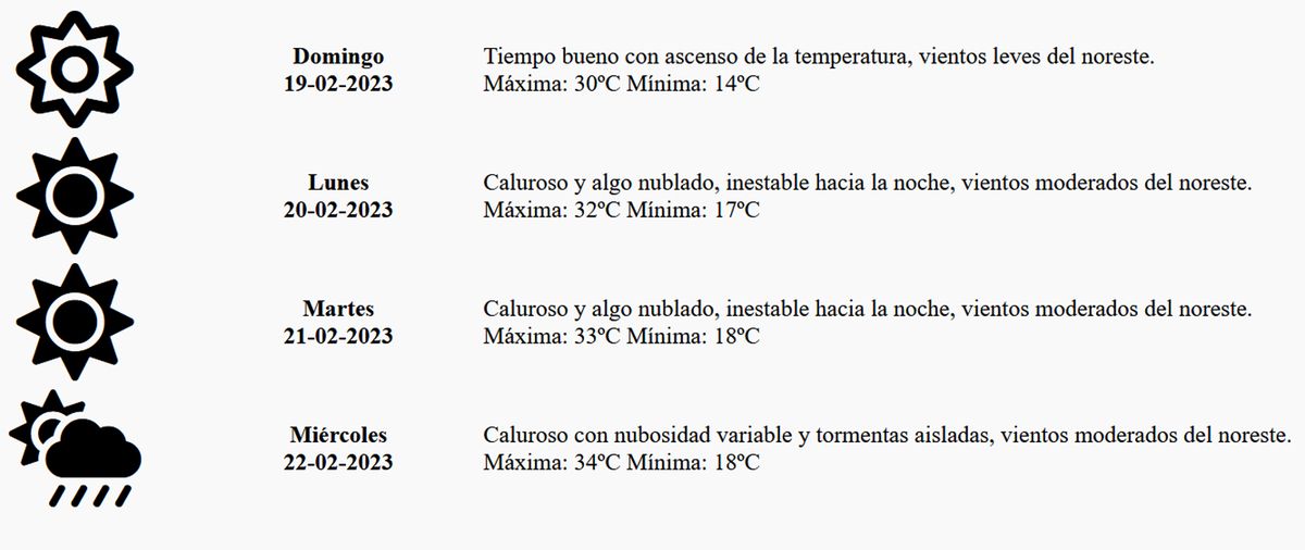 Sin embargo, por las noches de los dos feriados de Carnaval y sobre todo en la del miércoles se esperan tiempo inestable con algunas tormentas aisladas.