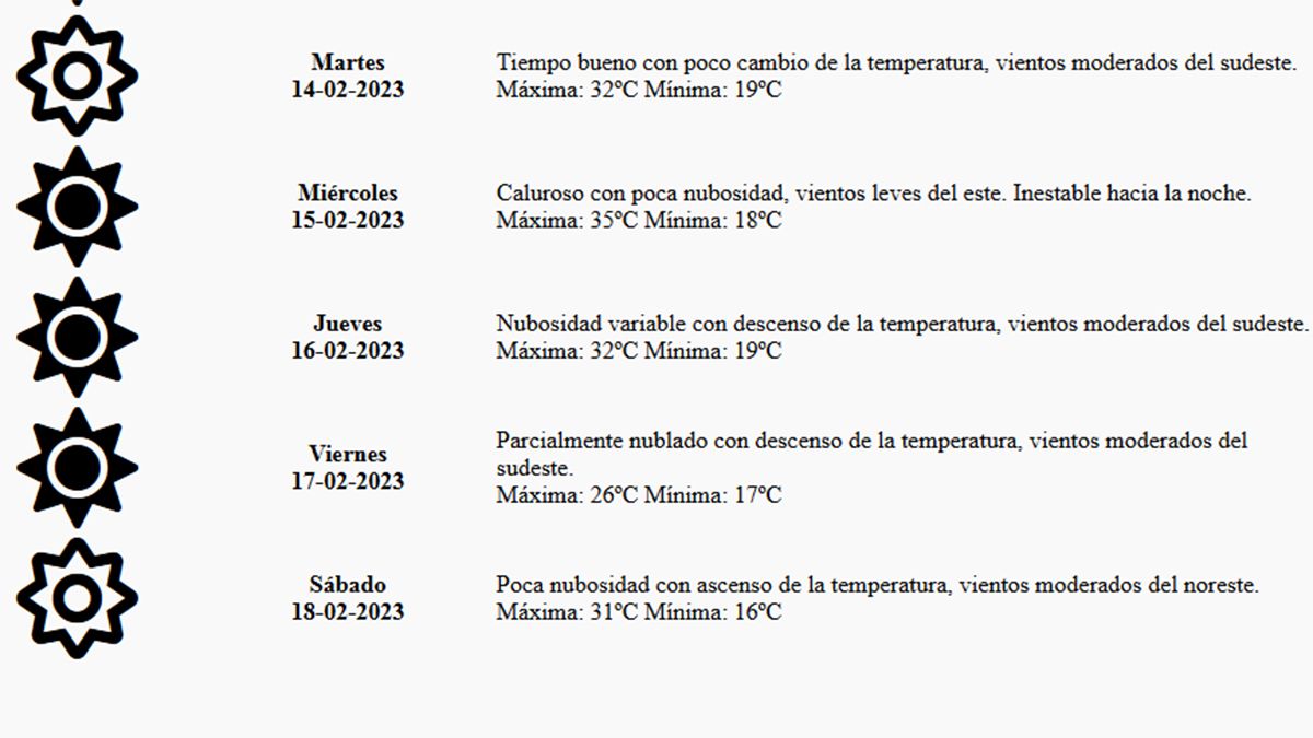 Para este viernes sí descenderá marcadamente la temperatura, que para el organismo metereológico local sólo alcanzará los 26 grados centígrados.