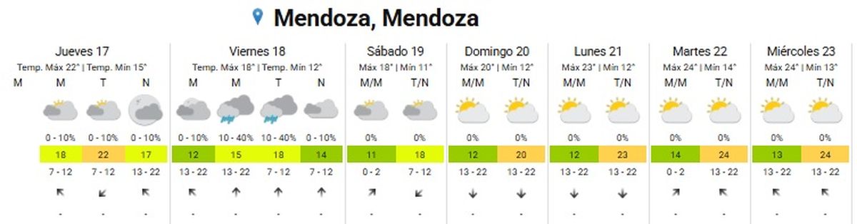 Con la llegada de Semana Santa, muchas personas comienzan a planear que harán estos días. El Servicio Meteorológico Nacional compartió el pronóstico del tiempo. A continuación te contaremos qué a qué hora lloverá en la provincia de Mendoza esta semana.