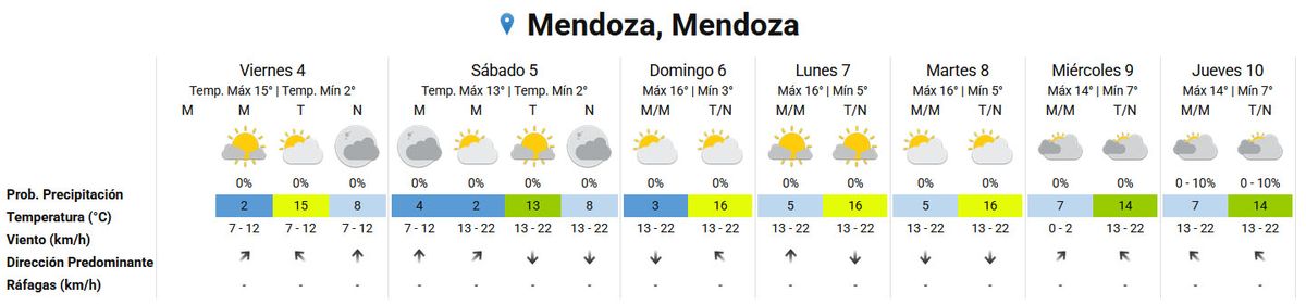 El pronóstico del tiempo en Mendoza anticipó un fin de semana muy agradable con repunte de las mínimas y máximas, luego de cinco días consecutivos con temperaturas bajo cero por la ola de frío polar.